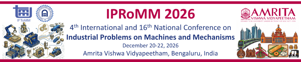 IPRoMM (Industrial Problems on Machines and Mechanisms) conference is one of the flagship conferences organized under the aegis of the Association for Machines and Mechanisms (AMM), which is a member organization of the International Federation for the Promotion of Mechanism and Machine Science (IFToMM).